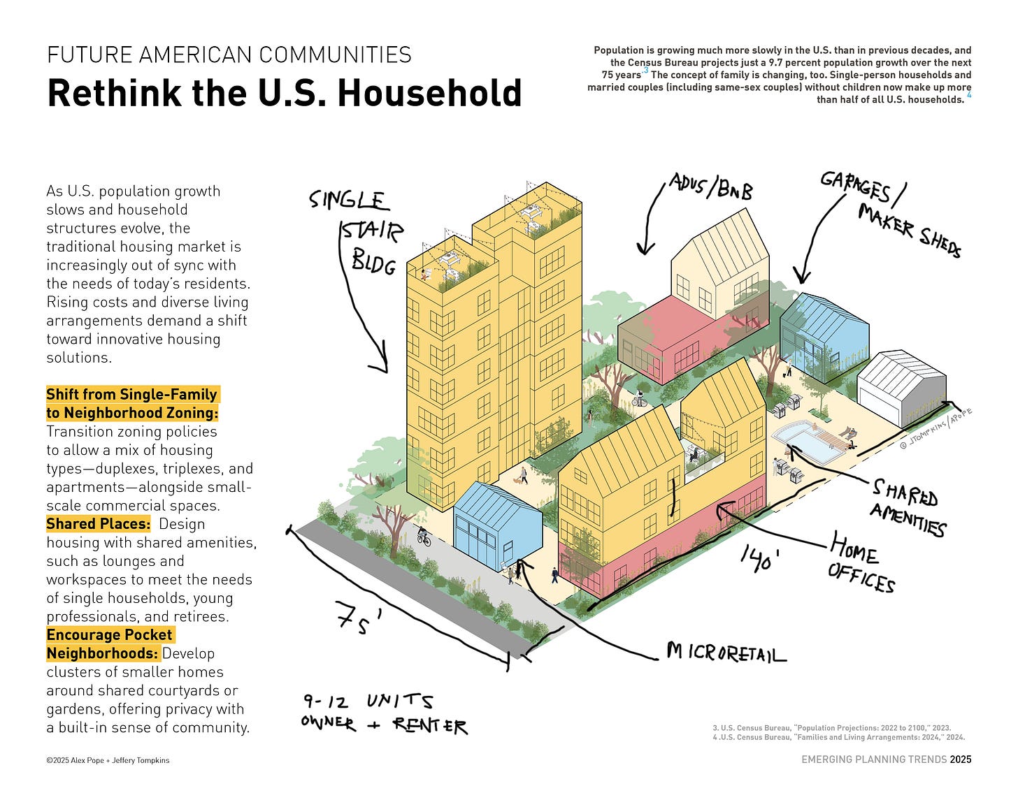 This approach respects neighborhood character while expanding choice. It supports schools by adding children. It increases housing supply without resorting to mid-rise construction. And it aligns with demographic reality: families are changing, and housing must change with them.