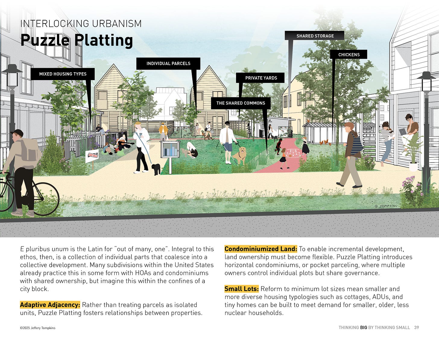 Shared greens, play areas, and cluster housing create safety and social fabric. For more on courtyard urbanism, I suggest a follow to the one and only Alicia Pederson.
