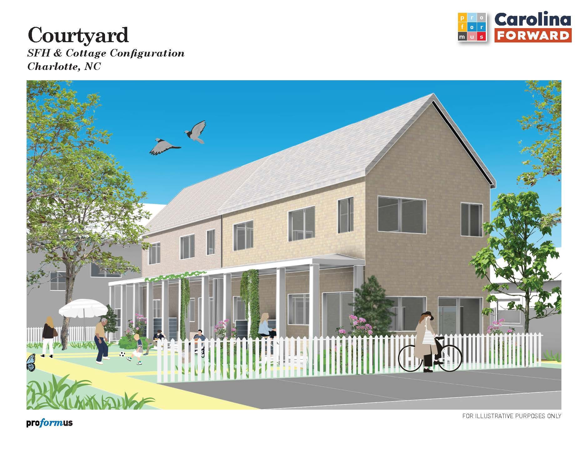 Think: three units around a shared yard rather than one oversized house.