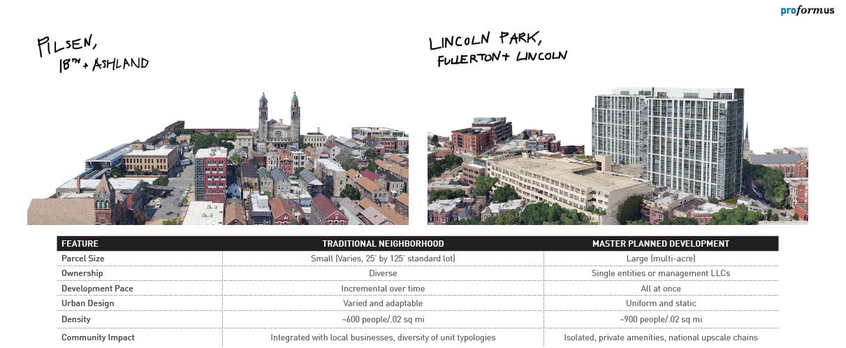 The grid layout of Chicago’s streets provided a framework for growth, but it did not dictate how individual parcels were developed. Instead, the interplay of individual decisions by property owners and entrepreneurs created neighborhoods that felt authentic and vibrant. Today, areas like Wicker Park, Pilsen, and Old Town retain the character of this organic development, showcasing a mix of residential, commercial, and cultural uses. So… what the heck happened?