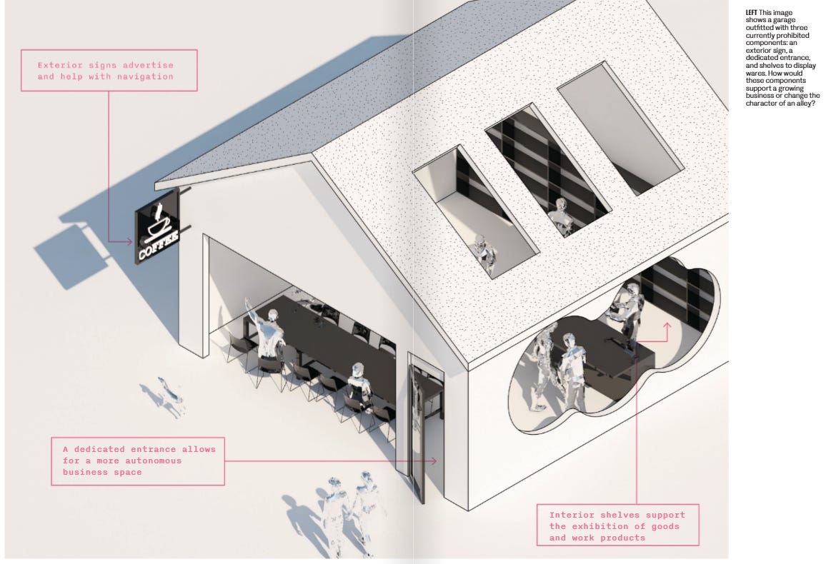 Re-allow Accessory Commercial Units → Many cities across the United States once had no problem allowing for stores to open in front of houses as demand for space increased - converting a garage into a shop is cut from the same cloth.